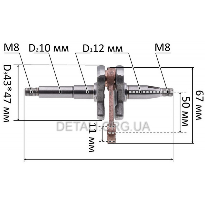 Коленвал бензопилы GoodLuck 2500 L137 посадки d12